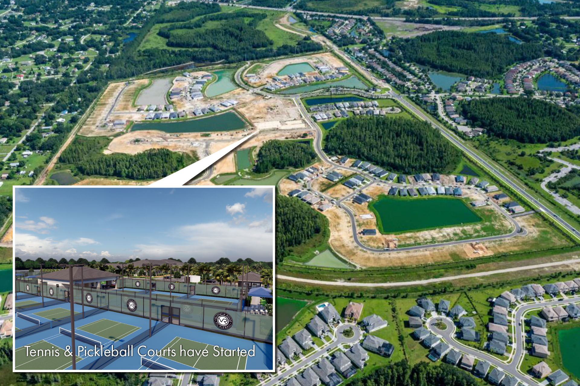Excitement is building at Valencia Ridge, Wesley Chapel’s premier 55+ community! The Racquet Club and Community Centers are underway, and lifestyle events with future homeowners are already bringing neighbors together for a chance to connect and make new friends. Once complete, the Community Centers will be the hub for neighborhood activities and events. With a fully dedicated fitness area and a large area for social gatherings and events, there will always be something fun happening at Valencia Ridge. Across the community, landscaping and scenic lakes are taking shape, making Valencia Ridge truly come to life!
