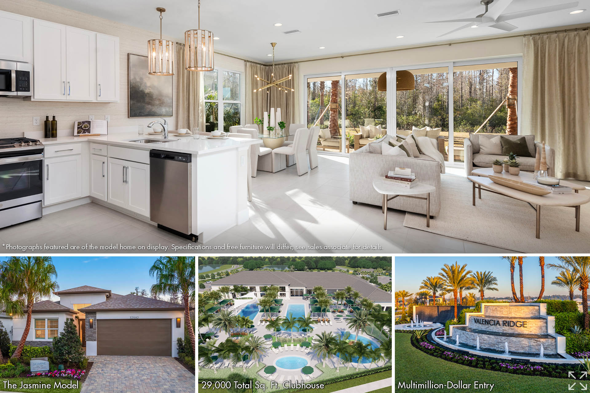 Visit Valencia Ridge today to tour the beautiful Jasmine model on homesite 178, complete with free designer-selected furniture and over $15,000 in savings! The Jasmine offers 3 bedrooms, 3 bathrooms, a den/optional 4th bedroom, great room, 2-car garage, and 1,954 a/c sq. ft. A gorgeous foyer with a 13' ceiling welcomes you home. The Jasmine features an open-concept layout that’s perfect for entertaining. Enjoy outdoor living on the covered patio and embrace the Florida lifestyle year-round. With unique design touches and incredible value, it’s easy to see why the Jasmine is so popular among homebuyers. You’ll also love the impressive standard features, including a gourmet kitchen with granite or quartz countertops, 42” upper cabinets, designer brick pavers, stone detailing, and more, making your new home both stunning and a great value. Plus, when you live at Valencia Ridge, you’ll enjoy the very best 55+ lifestyle in Wesley Chapel.